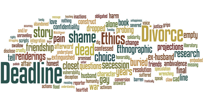 In “Deadline: Ethics and the Ethnographic Divorce,” Lisa Tillmann receives a call from a reporter about her book, Between Gay and Straight. “Deadline” explores tensions between private and public as the private turmoil of divorce clashes with the public construction of Tillmann’s marriage and with her determination to continue advancing the social justice agenda of her work.